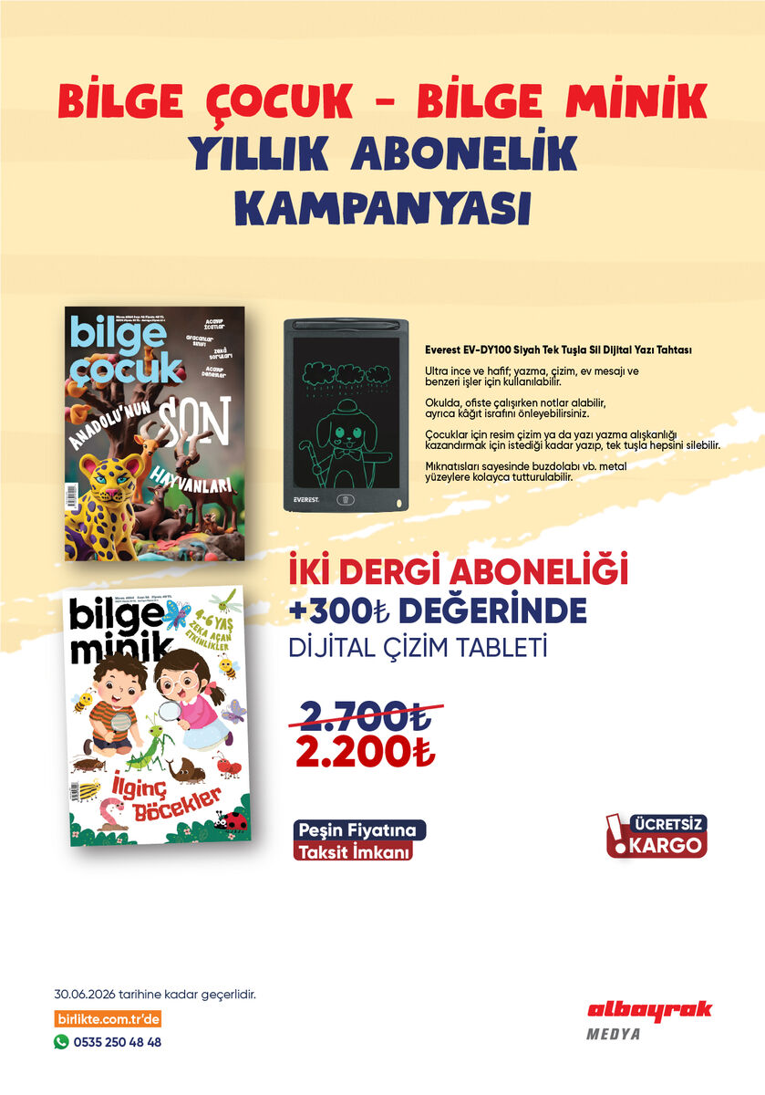 KAMPANYA DİJİTAL ÇİZİM TABLETİ + BİLGE ÇOCUK VE BİLGE MİNİK DERGİSİ ABONELİĞİNİ KAPSAMAKTADIR